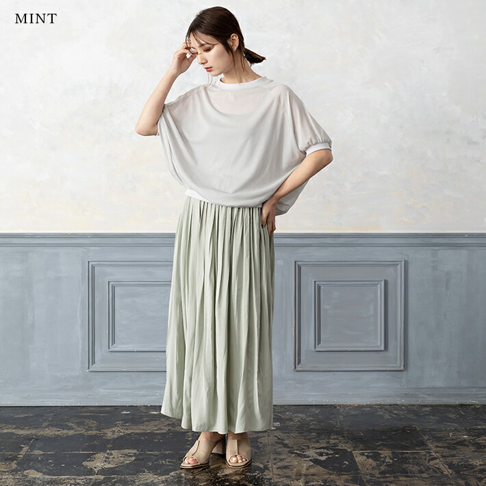 \50%OFFクーポン使える/ギャザースカート【レディース ボトム スカート ギャザー プリーツ クリーム ミント ライトブルー 春 夏】